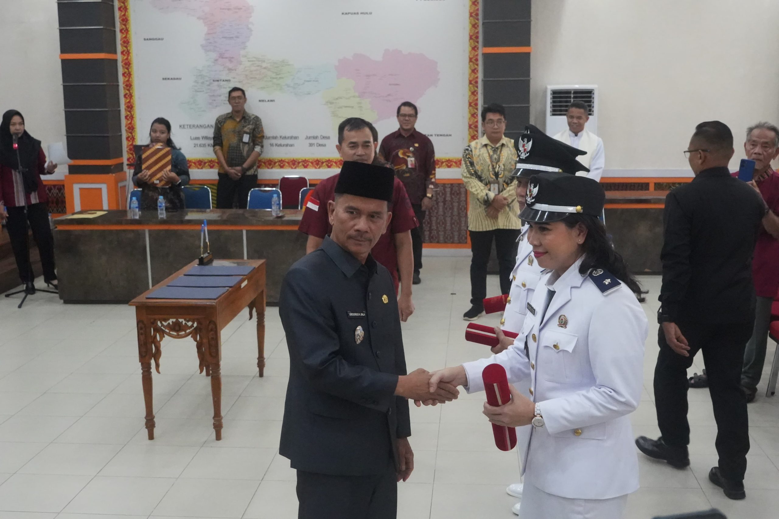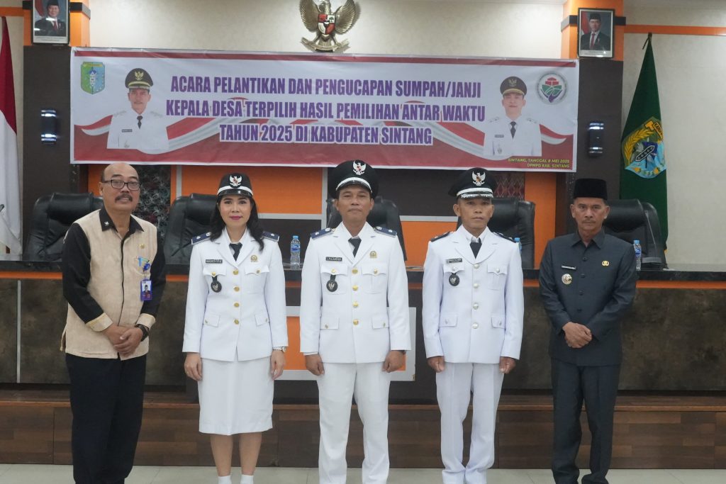 Bupati Sintang, Gregorius Herkulanus Bala melantik tiga Kepala Desa hasil pemilihan antar waktu pada Kamis, 8 Mei 2025 di Balai Praja Kantor Bupati Sintang.
