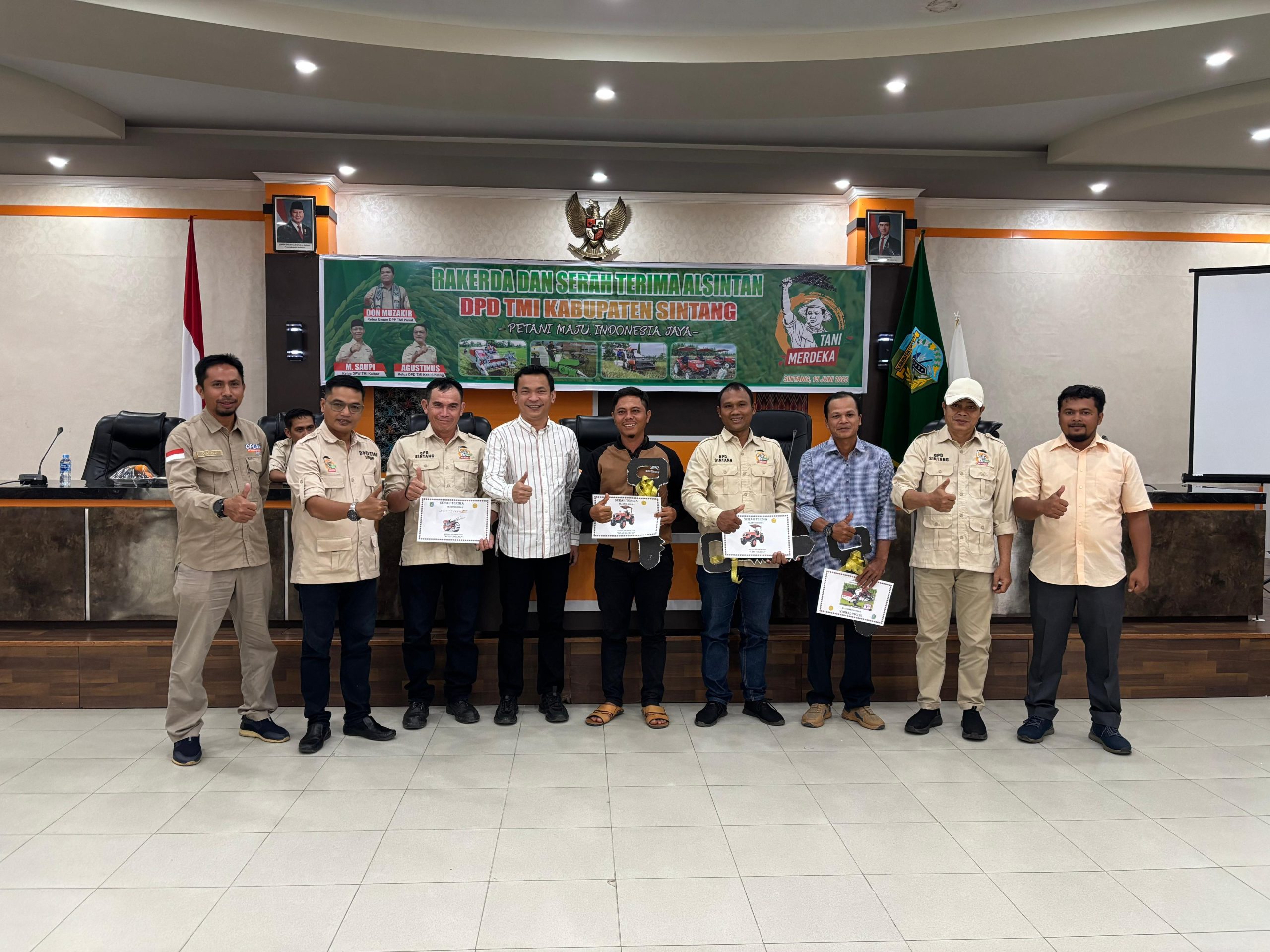 Wakil Bupati Sintang dalam acara “Rakerda dan Serah Terima Alsintan DPD TMI Kabupaten Sintang” pada 15 Juni 2025.